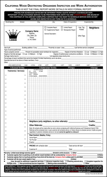 California Termite Inspection And Work Authorization One Stop Printers Direct Mail Service
