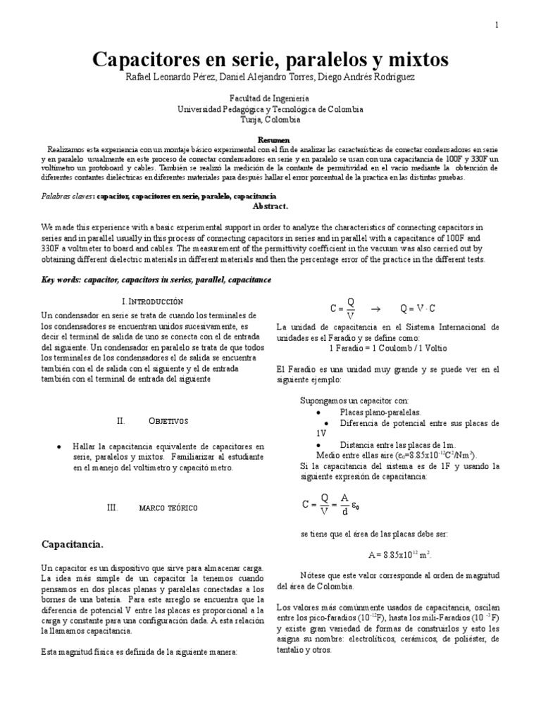 En estos tres capacitores que se armaron tanto para capacitores en paralelo el voltaje en serie paralelo y mixto se midió la es igual y para capacitores en serie el capacitancia equivalente para cada uno.
