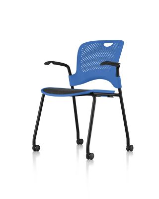 Herman miller caper stacking chair molded seat arms casters dark blue black.