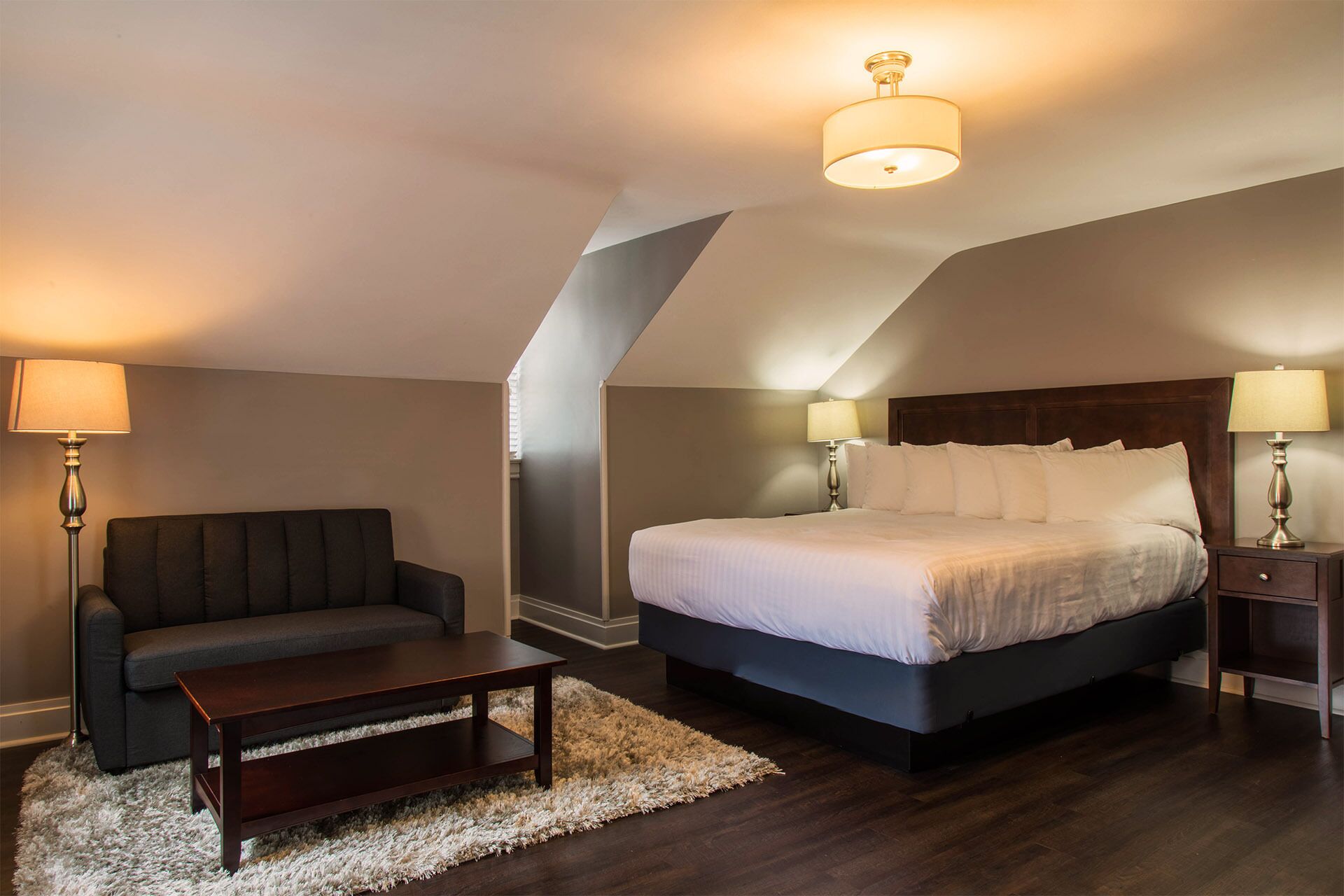 These third floor rooms were built into what was once the attic of captain wohlt s house and they are delightful smaller rooms 150 sq ft with charming gable windows and sloping ceilings.